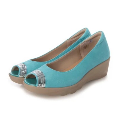 つま先にスパンコールで光を纏うオープントゥパンプス